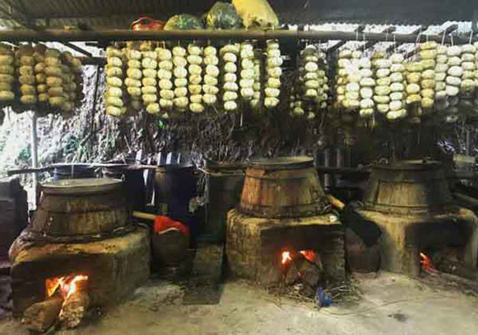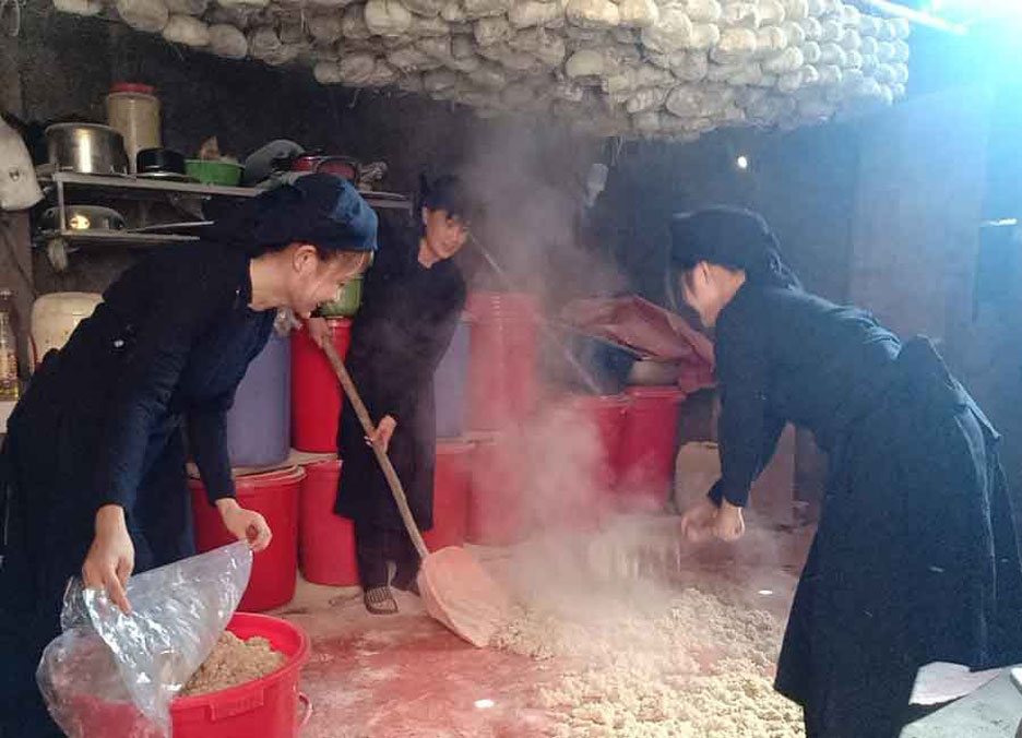 – Làm men: Men lá dùng để ủ, nấu rượu được làm từ lá thuốc bắc với bột gạo nếp nương, quá trình làm men do mỗi cơ sở nấu tự chủ động sẽ giúp đảm bảo chất lượng và hương vị đặc trưng riêng của từng cơ sở.